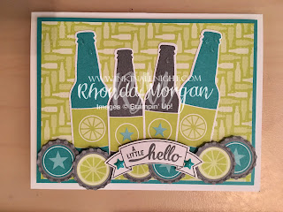 I have used the framelits to cut out the bottles from the DSP and the bottle caps too!  I added a greeting and a couple of the enamel shape embellishments!  Simple and easy!