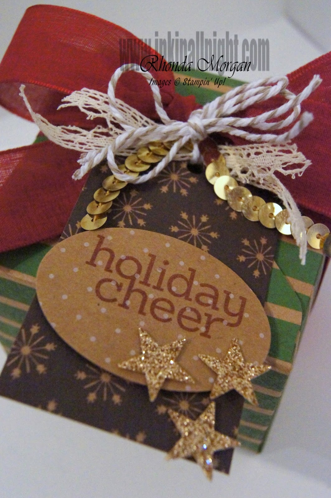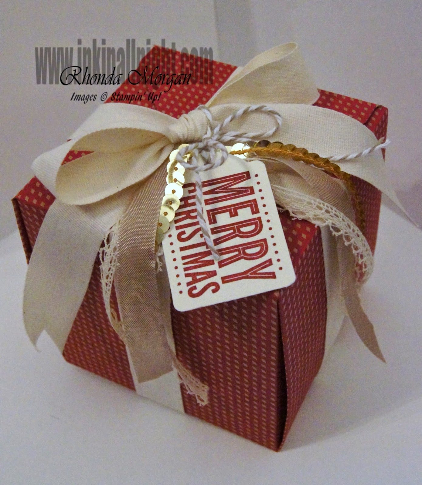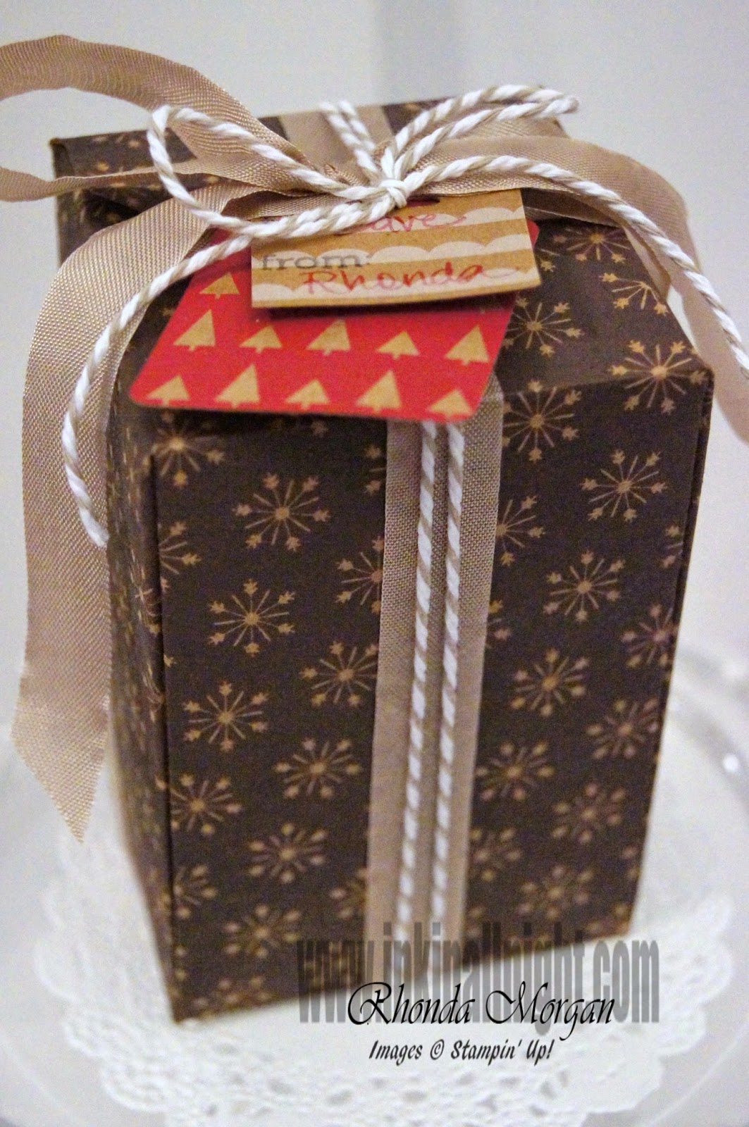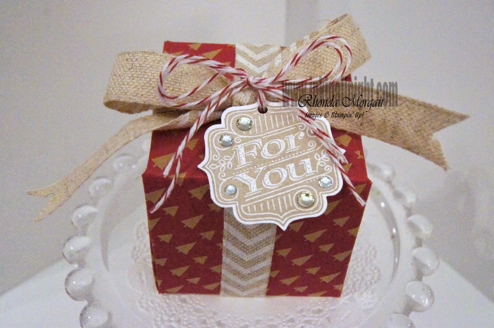 Today I will share the close ups of the boxes from my Bags & Boxes Vignette from INKstravaganza if you’re still following along! These were all made with the awesome new GIFT BOX PUNCH BOARD tool and the UNDER THE TREE Specialty DSP paper, and a variety of trims and ribbons for embellishments along with the GOLD SHIMMER PAPER! Yum, yum, so much prettier in person (yes, I really do think so!).