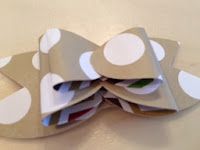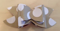 Repeat with 1 mini glue dot on the other edge and bring 2nd side of oval into center, creating the layer of the bow.  do this for each size of oval pairs.