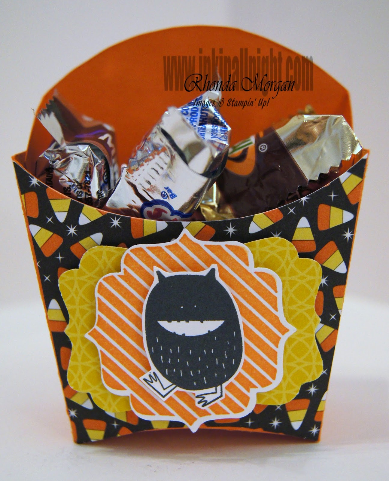I have had so much fun playing with the French Fry Die since it debuted in the catalog in July … you can make them for every occasion! I’ve done soft and subtle with the Pistachio ones, vibrant and fun with the Birthday ones and now sweet and spooky with the Halloween ones!