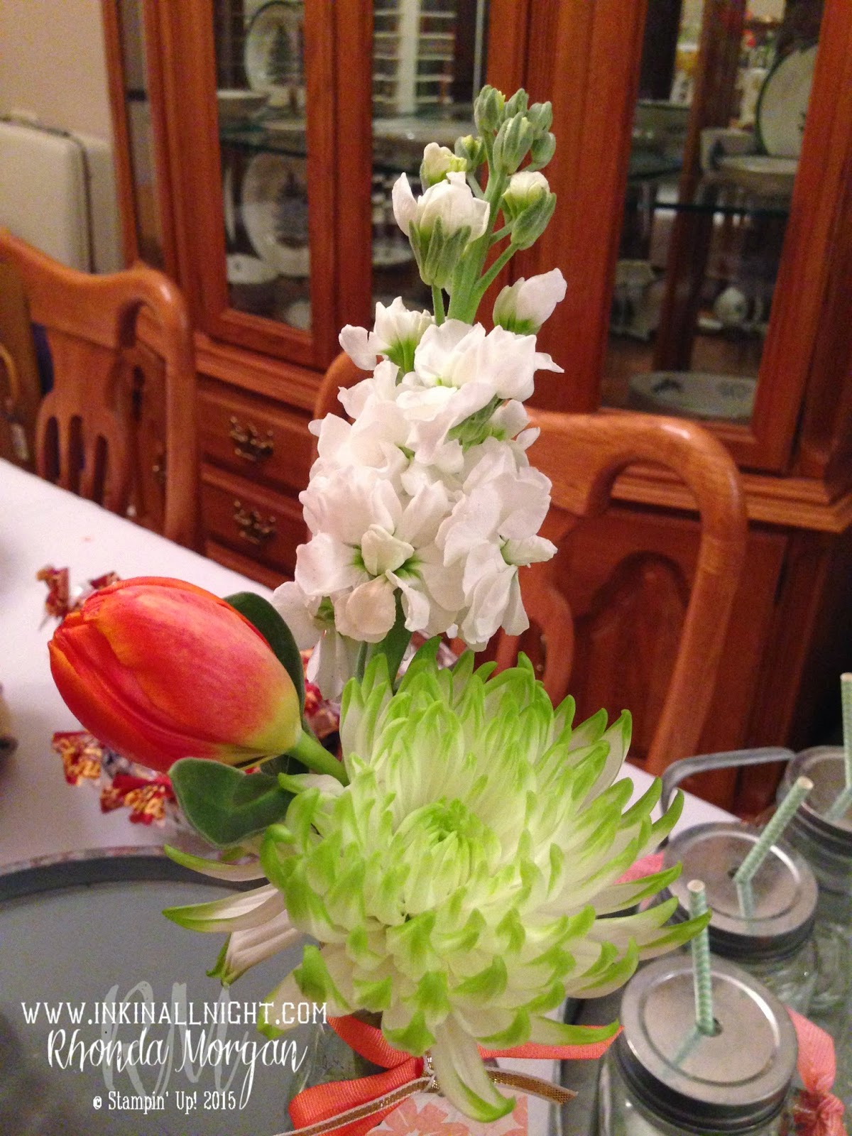 I start out the day by acknowledging their achievement and presenting each attendee with real flowers and a hug!  Where as grown women do we actually receive recognition that says “I appreciate what you’ve done!”…?  I have to say that these were my very favorite treat for them of the day!  I bought loose flowers and made all of the arrangements myself the night before!  I love tulips and they had the perfect color to coordinate with my theme for the day!