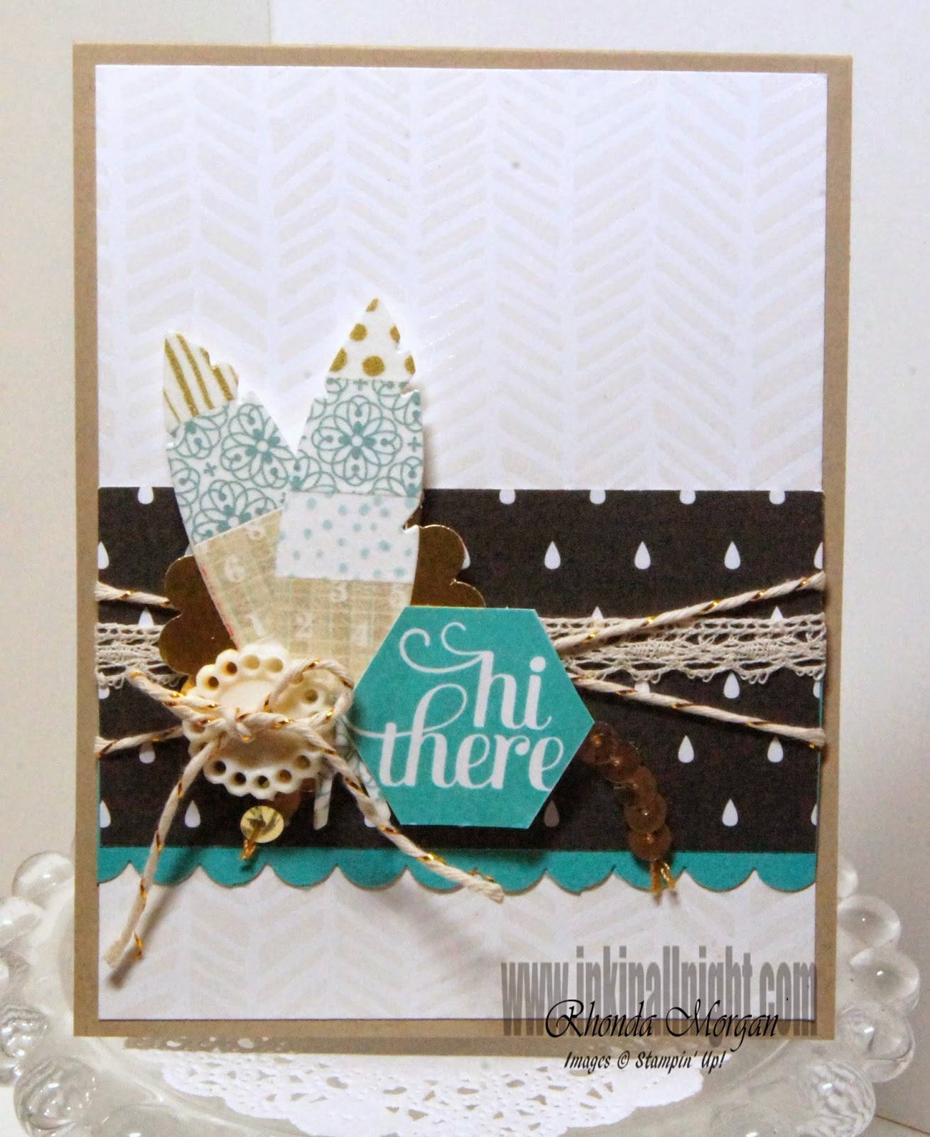 Amy O’N – her card featured the stamp set A Happy Hooray but I again took pretty much her exact card and change it a bit and used Four Feathers and added a washi tape technique … and tah-dah