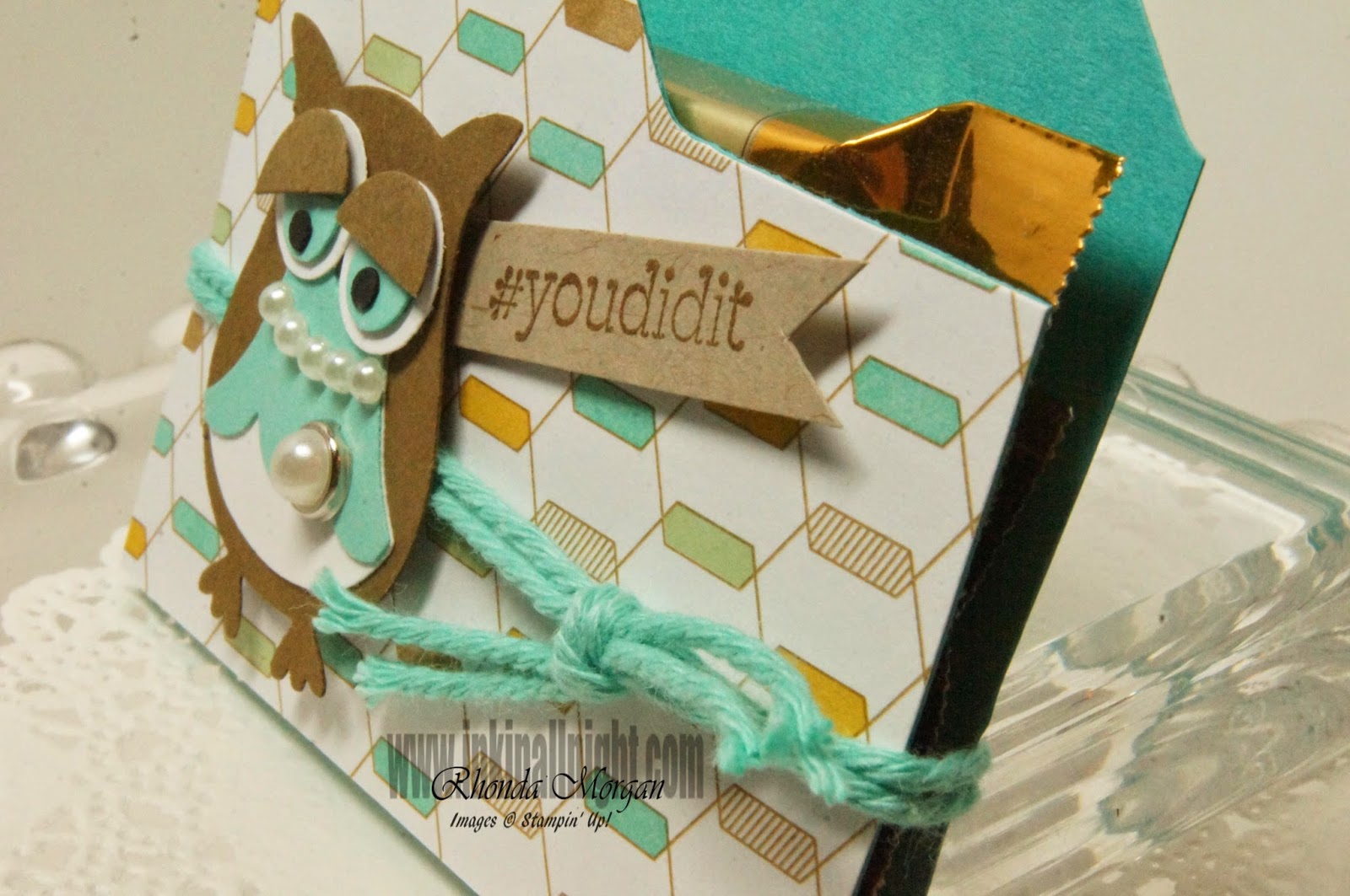My sweet adorable pal Becky Roberts, over at Inking Idaho has made these little mini file folders that hold a Ghiradelli Treat (Caramel, my favorite!).  I’ve made these before but I thought it was just perfect for my lil’ Miss Mini Owl from the Owl Builder Punch!  Yes I had to search for DSP with the right colors, whew, thank you Lullaby!!  The file folder piece is made with cardstock and the Envelope Punch Board.  IF I did this right, the link should take you to her post that includes a video tutorial  đꙂ   and how lucky that the Caramel Ghiradelli is in a Gold Foil so it worked perfectly too!