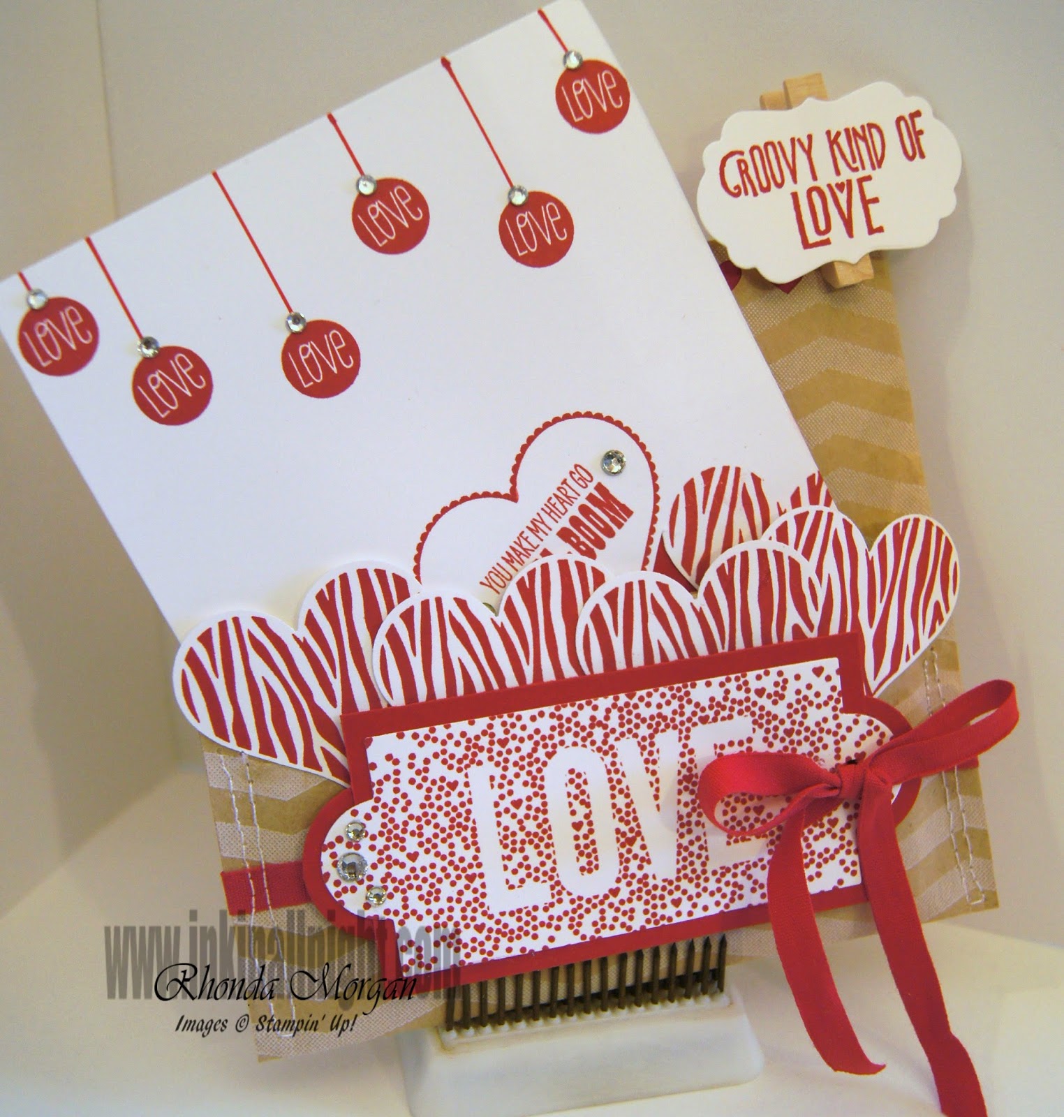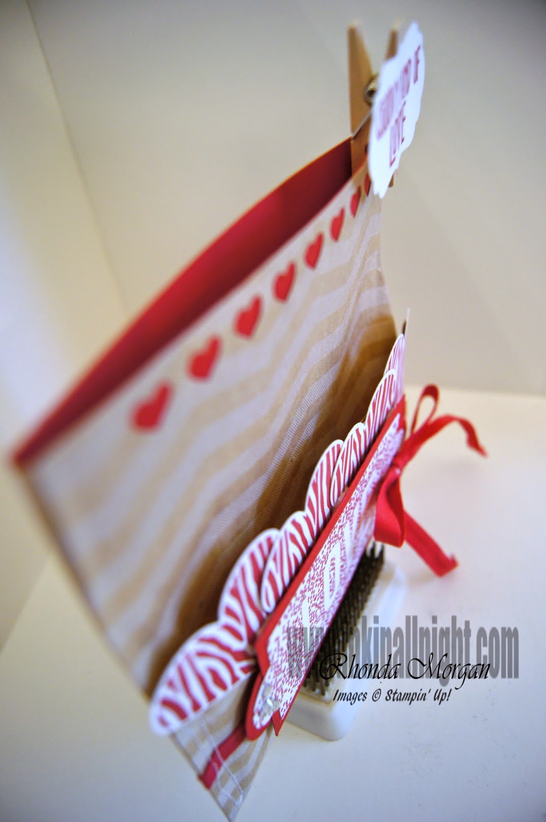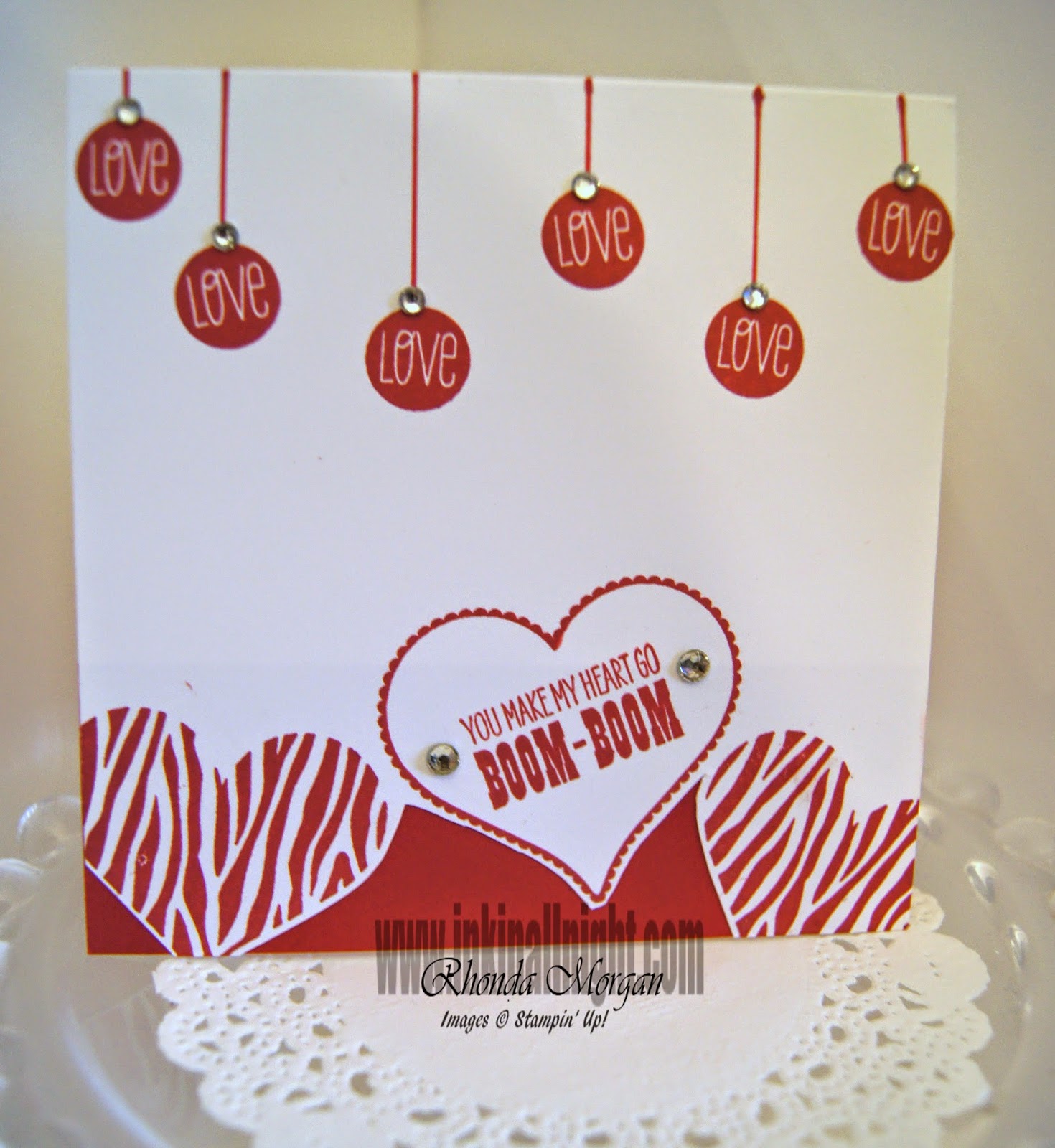 | I stamped the hearts and then hand trimmed around the edges and adhered a piece of red cardstock to the inside front panel so card still stands |