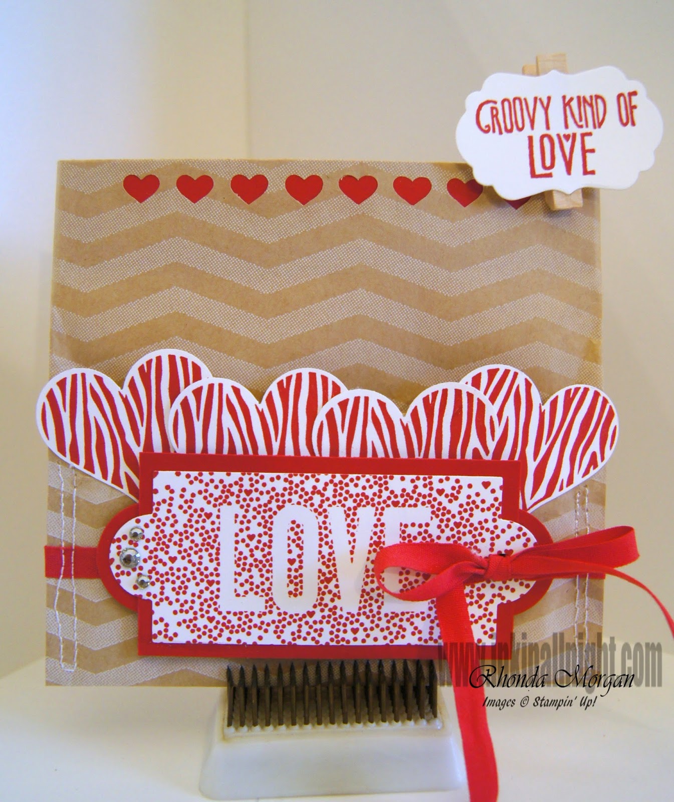 I had made a cute little folded chevron bag a long time ago, or a few months ago at least and my team loved it so when I was working on this display and trying to cover many occasions, and to show samples with all of the available styles of bags we offer, I just had to make one more!