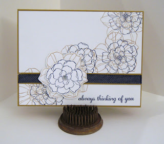 And it’s always fun to see what card each other comes up with.  Whether it’s an original design or you see something online that just strikes you!  One of the beauties of stamping is that there are SO MANY ideas shared!  Marjori and Dana’s cards are so similar but yet different, one is Navy/Crumb and the other is Black/Crumb but how cute that they were so close in style, featuring SECRET GARDEN and its coordinating framelits!  This set from last year is still one of my very favorite flower sets!